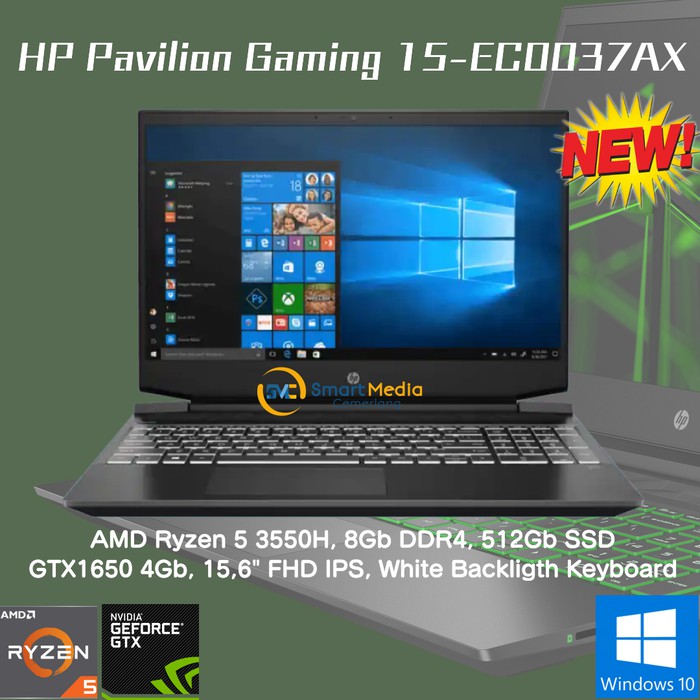 Notebook Hp Pavilion Gaming 15 Ec0037ax Grn Amd Ryzen 5 3550h 8gb 512gb Ssd Gtx 1650 4gb No Odd Win10 Bpack Mdp It Electronic Store